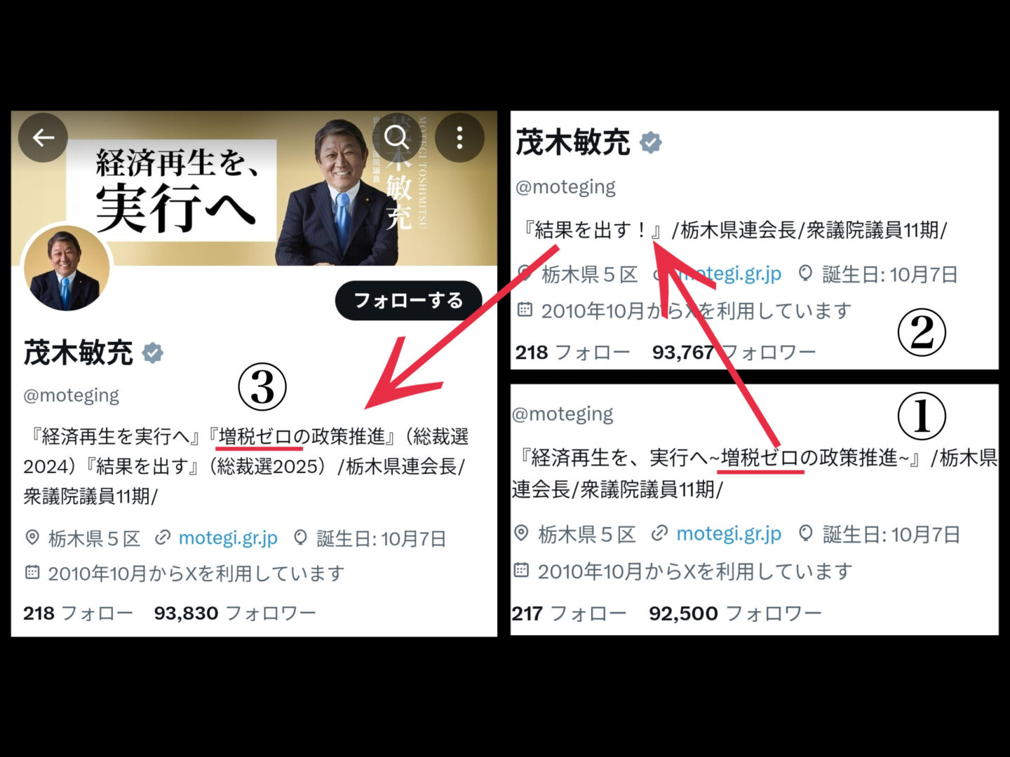 さらに、その翌日、批判が高まる中で再びプロフィール欄に「増税ゼロ」の文言が戻されました。この一連の変化は、政治家としての信念の有無や一貫性を問うものとなり、批判が収まるどころか逆に増幅する結果となりました。特に、削除と復活の間隔が短すぎたため、「世論を気にして右往左往している」との印象が強まったようです。