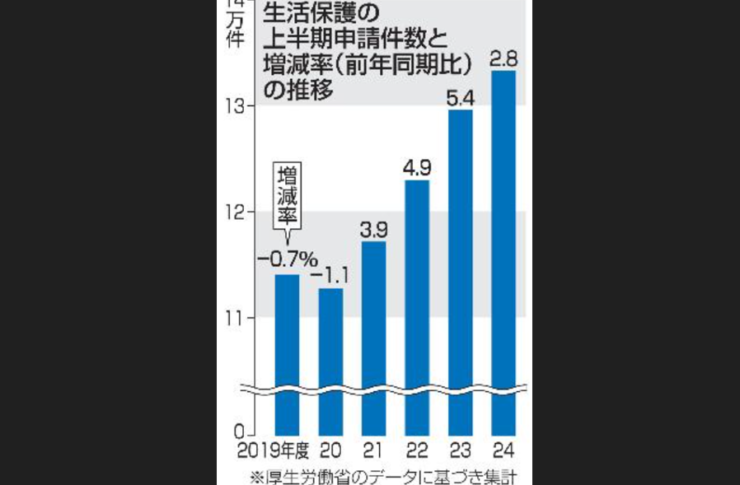 【2024年度上半期】長引く物価高で「生活保護申請が前年同期比で2・8%増の13万3274件。コロナ禍を上回る」