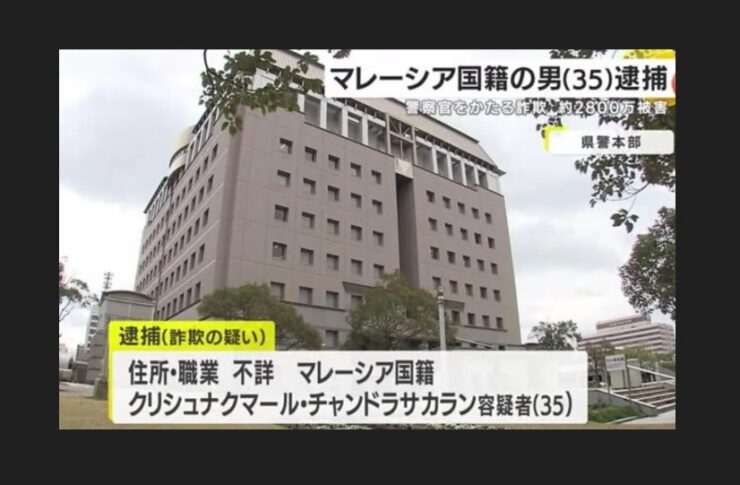 【マレーシア国籍の男】警察官になりすまし現金約2800万円だまし取った疑いで逮捕 鹿児島