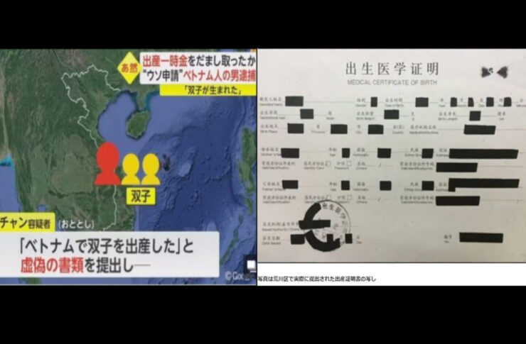 チャン容疑者は2021年、子どもが生まれていないにもかかわらず、「ベトナムで双子を出産した」とする虚偽の書類を提出し、加入している全国健康保険協会から、子ども2人分の一時金80万8000円をだまし取った疑いで5月23日に逮捕された。なぜそのようなことができるのだろうか。