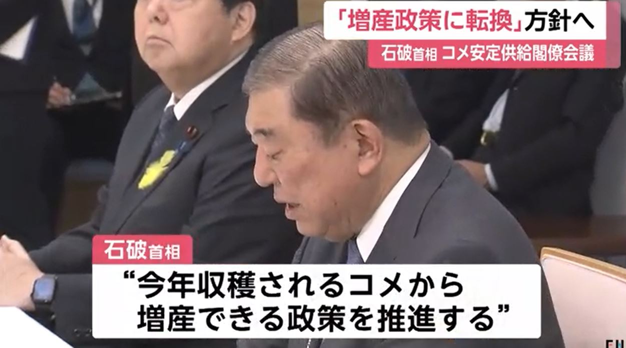 石破首相は1日、政府の「米の安定供給等実現関係閣僚会議」で、今年産分からコメを増産する方針を示し、「不安なく増産に取り組める新たなコメ政策に転換する」と表明した。 会議で石破首相は「これまで、随意契約の導入、買戻し要件の撤廃、小売事業者への直接売渡しなどの取り組みを迅速に進めたことにより、政府備蓄米の販売店舗が速やかに拡大し、コメの平均価格は3801円と3000円台の水準となり、着実に成果が表れている。関係各位のご尽力に感謝申し上げる。小泉農林水産大臣におかれては、手を緩めることなく、米の価格の更なる安定に向けて、対応を進めてください」と述べた。