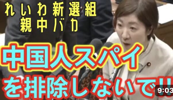 れいわ・大石あきこ 「中国人スパイを排除するな」と堂々と公言。SC法で中国人スパイが排除されることを懸念www https://t.co/GhNSEwpVd9 @YouTubeより