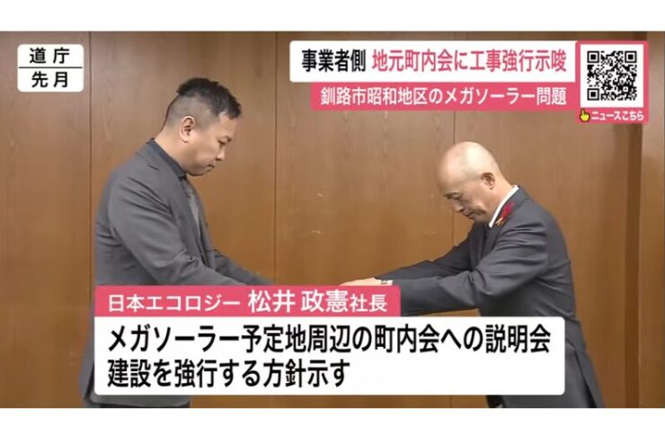 - 【釧路湿原メガソーラー問題】日本エコロジーが「工事同意を条件」に“現金200万円”提示 工事に反対する町内会を金で釣るような提案も、町内会は断固拒否〈北海道〉