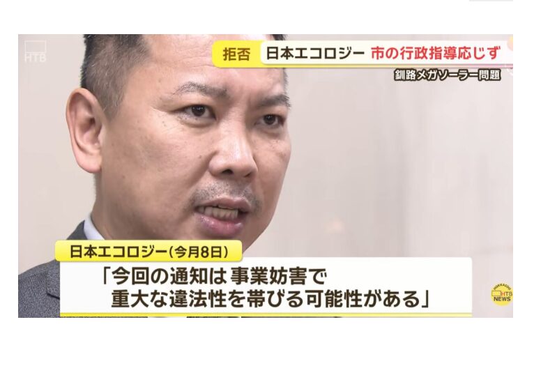 【釧路メガソーラー問題】日本エコロジーが指導を拒否し伐採強行「行政指導には応じない…通知は事業妨害で重大な違法性を帯びる可能性」と主張 調査巡り市と対立[HTB/動画][HTB/動画]
