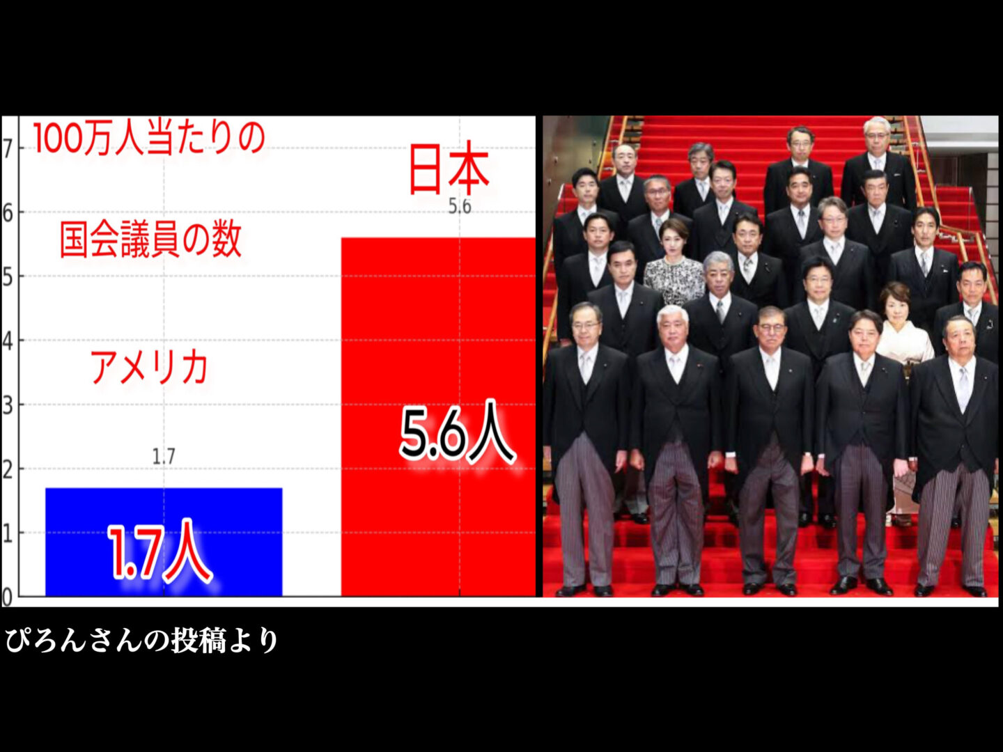 - アメリカより小国家なのに倍以上議員いるとかおかしい!へらせ!議会中にねたりゲームする議員なんか税金泥棒!真面目に働いてる国民を見習え!