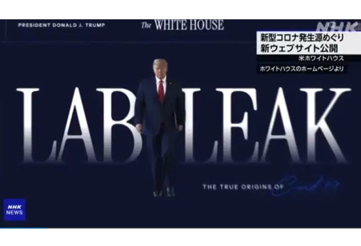 ホワイトハウスが18日に公開したウェブサイトは「研究所からの流出・コロナウイルスの真の発生源」と題したもので、あわせてトランプ大統領の写真も掲載されています。