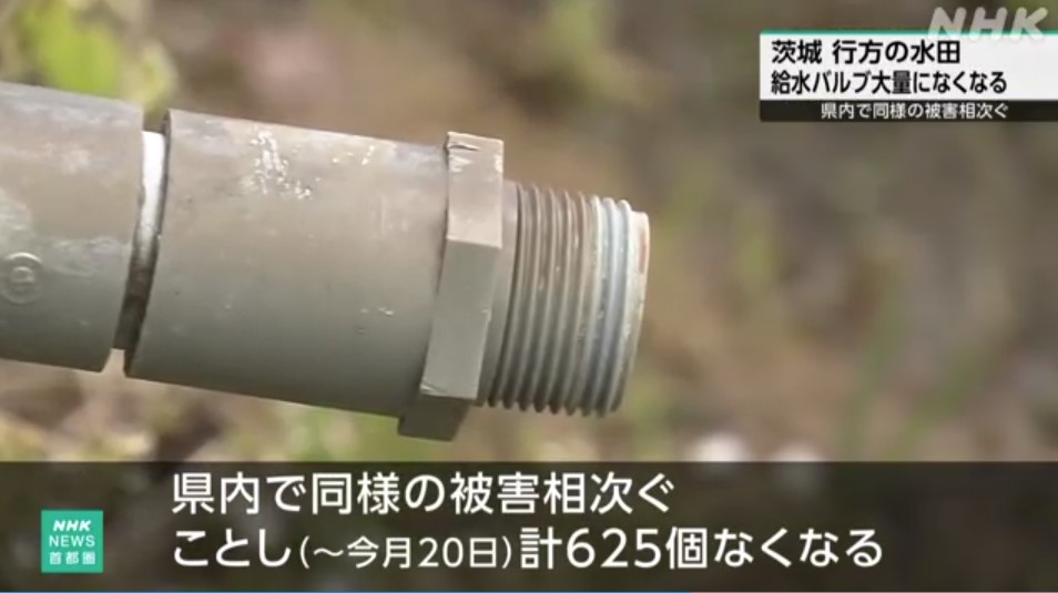 【茨城】水田で金属製の給水バルブ約100個なくなる