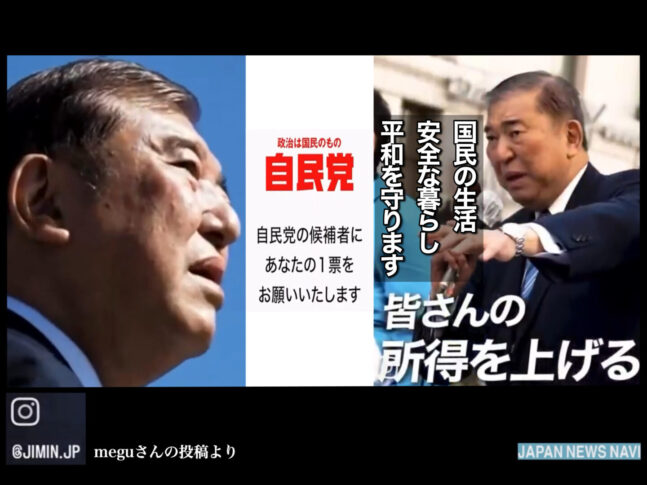 日本国をかけた戦いであります。物価上昇を上回る賃金の上昇を!…格差を縮め、国民の生活を守ってまいります。国を変え、歴史を変えるのは地方であります。みんなが夢と希望を持ち、安心して子育てができる社会、安全な市民の暮らしを守ってまいります。防災、海外対応…この日本の国の独立と平和を守り抜きます。…謙虚に誠実で、公平で公正な政党として…日本のために、次な時代のために新しい自民党を作ります。どうぞ皆様お力を貸してください。動画:石破茂氏