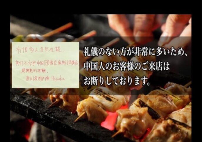 日本の焼き鳥店、中国簡体字で「中国人のお客様のご来店は、失礼な方が多いためお断りしております!」と掲示 中国人「この様な差別的な扱いは本当に残念」 pic.twitter.com/C2E2RAEc73