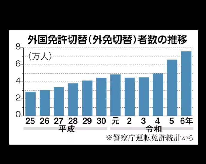 外国免許切替、過去最多7万6千人 昨年1年間の警察庁統計、10年で2・5倍https://t.co/6cTffQkZxs