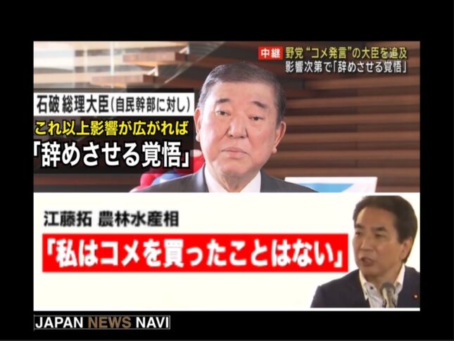 石破首相は、支持者から無料で米をもらっているため米を買う必要がないとの江藤農相の発言に「激怒」していると報じられている。