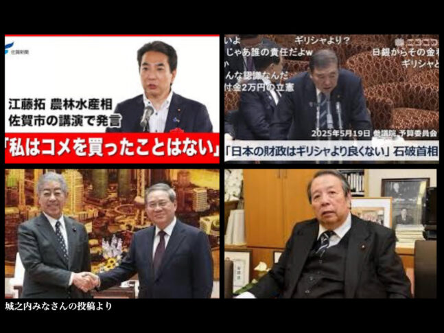 次に江藤農林水産大臣の「私は米を買ったことがない。売るほどある」という発言。これは冗談のつもりだったのかもしれませんが、国民の食を支える農政の責任者が発する言葉としては、あまりに軽率であるように思えました。農業に真剣に向き合っている方々の気持ちを考えると、残念でなりません。