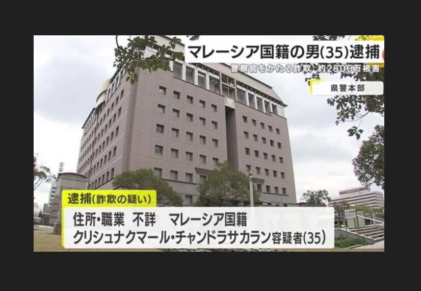 【鹿児島】警察官になりすまし現金約2800万円だまし取った疑い マレーシア国籍の男(35)を逮捕 https://t.co/STzSbcBfxK