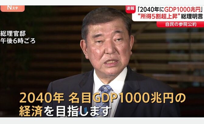 石破総理「2040年GDP1000兆円目指す」参院選“一番目の公約”に 所得5割増も