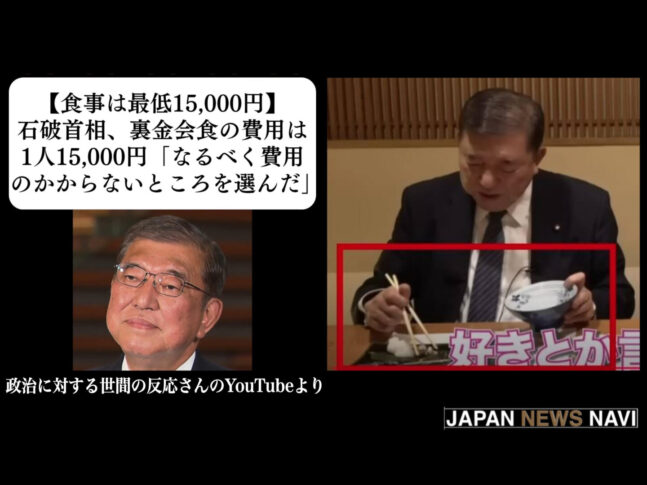 石破総理「会食にはなるべく費用のかからないところを選定しました。一食あたり一万五千円しかかかっていません。」