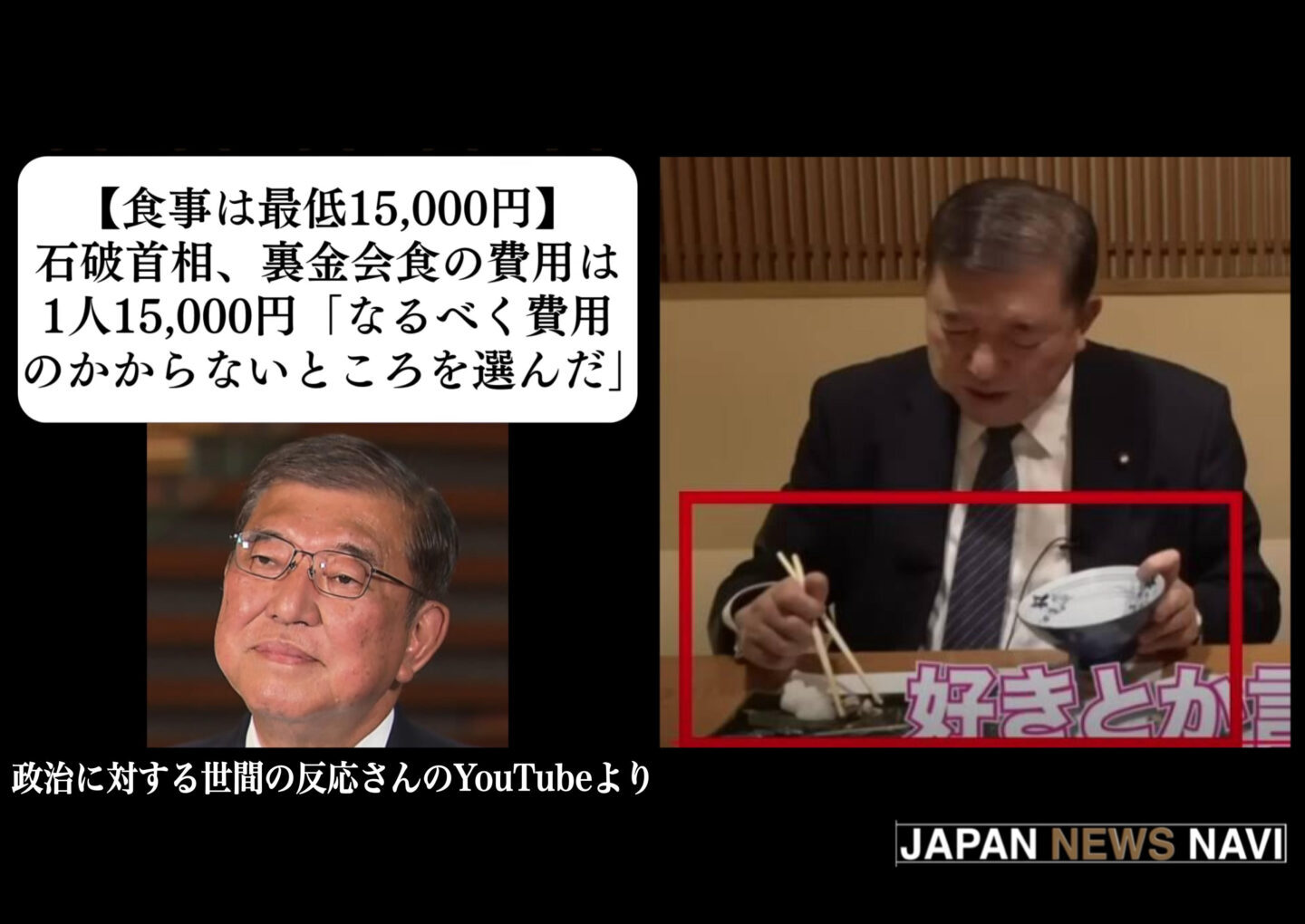 石破総理「会食にはなるべく費用のかからないところを選定しました。一食あたり一万五千円しかかかっていません。」