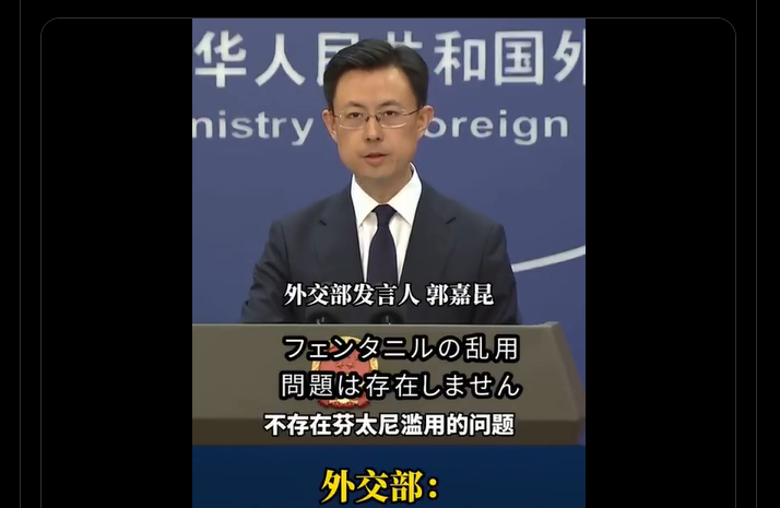 “中国がフェンタニル製造可能な化学物質の規制を強化 6月24日、中国外務省の郭嘉昆(グオ・ジアクン)報道官が定例記者会見を行った。 ブルームバーグの記者が、「中国がフェンタニル製造に使える2種類の化学物質に対する規制を強化した。これは米国の要請によるものか、それとも米中協力の結果か」と質問した。 郭報道官は「中国の関連部門がこの件についてすでに発表している。確認しろ」と述べた。