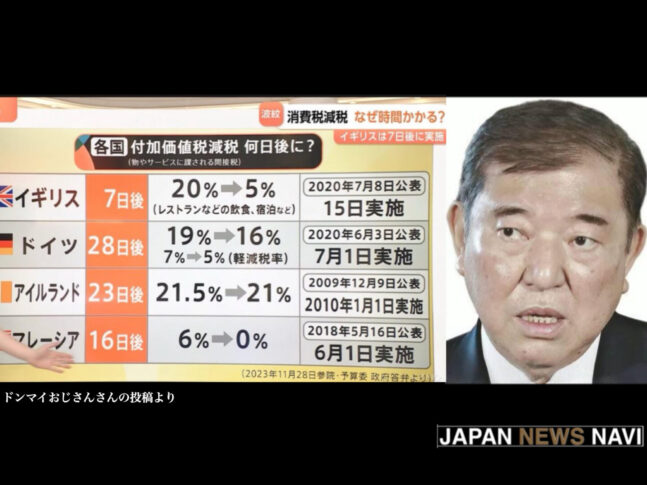 TBSの報道によれば、イギリスでは付加価値税(日本で言うところの消費税)をわずか7日で引き下げた実績があるという。他にもドイツは28日後、アイルランドは23日後、マレーシアに至っては16日で減税を実施している。どの国も準備期間は1か月に満たない。これを見たとき、率直に「なぜ日本ではできないのか」と感じた。