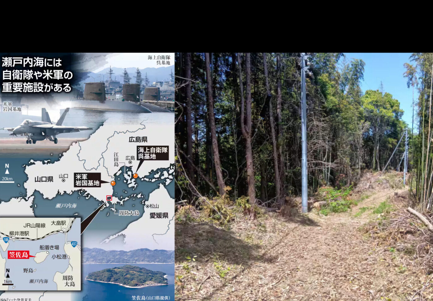 ・笠佐島は瀬戸内海の海上交通の要衝であり、海自や米軍基地もあることから、安全保障上も重要。