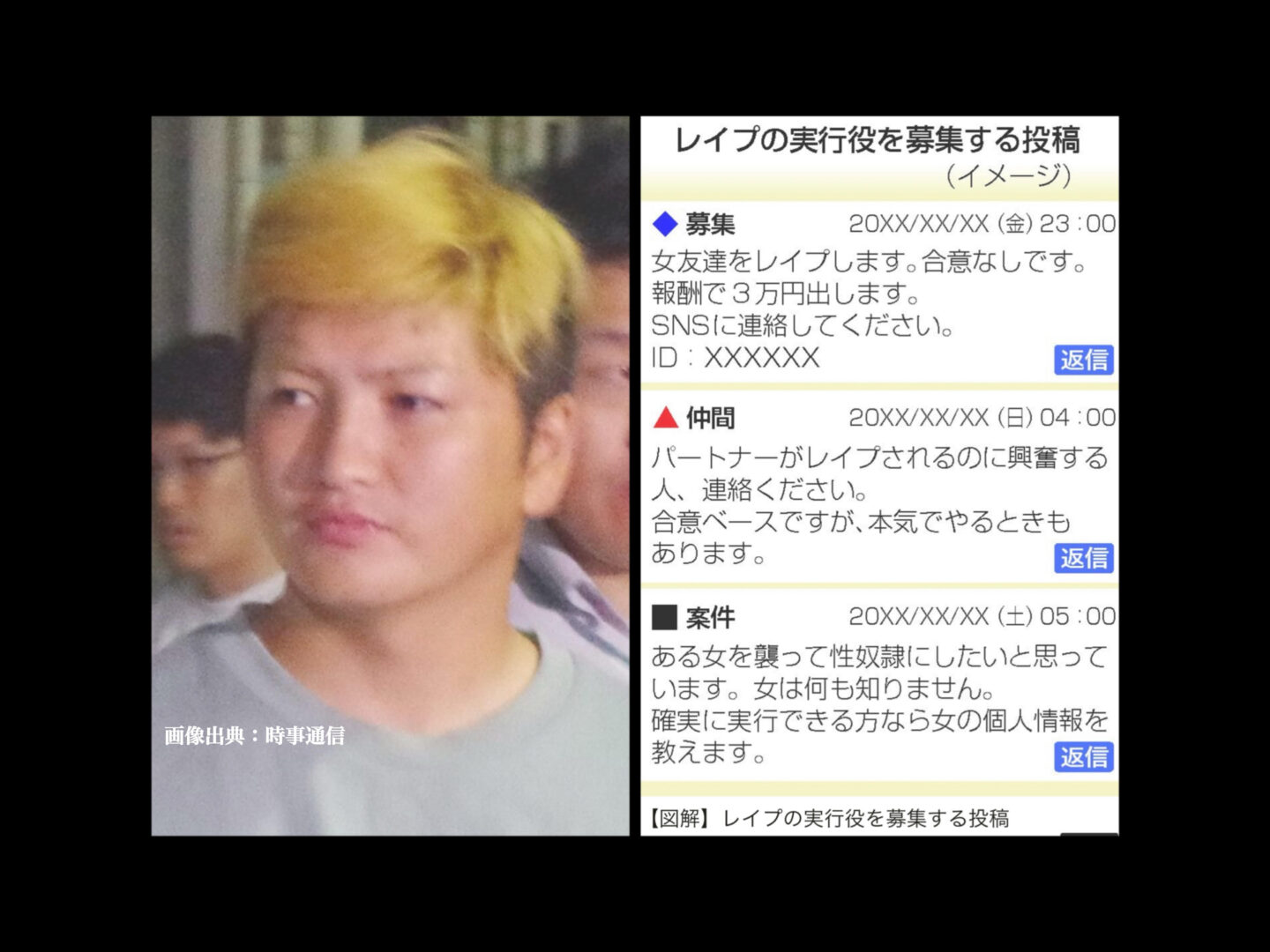 ・加害者は掲示板で「性的暴行してくれる人募集」と投稿した女性の知人から依頼されていた