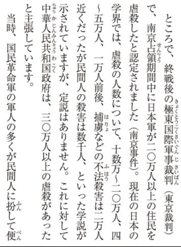 私が執筆した文科省教科書検定を合格した『国史教科書』の南京の事件に関する記述を添付しておきます。 pic.twitter.com/Gx0gUZ62N1