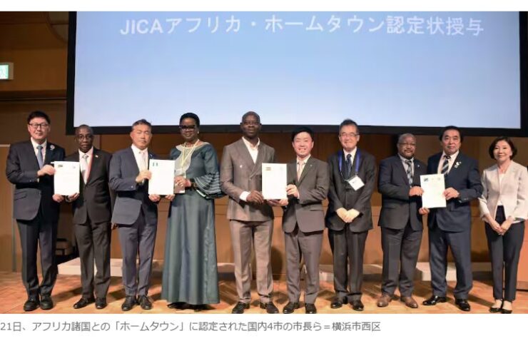 国際協力機構(JICA)は山形県長井市、千葉県木更津市、新潟県三条市、愛媛県今治市をそれぞれタンザニア、ナイジェリア、ガーナ、モザンビークの「ホームタウン」に認定した。第9回アフリカ開発会議(TICAD)に合わせて行われた式典では、市長らに認定状が交付され、今後は「人材環流」を通じた双方向の交流拡大を目指すと説明された。今治市はプレスリリースで「人口減少と高齢化が進む地域課題の解決に向けて、モザンビークと相互の課題を解決できるよう取り組む」とし、若い労働力の確保を視野に入れていることを明らかにした。