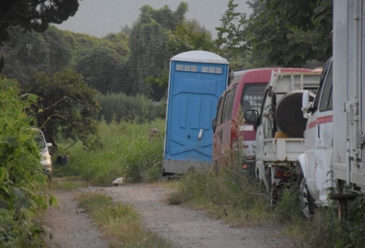 現場は畑や廃品置き場などが点在する山中にある。資材置き場は、中古車輸出会社を経営するスリランカ国籍の男性社長が土地を借りて使用していた。