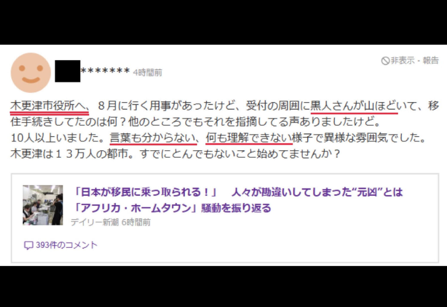 私が確認したところ、木更津市役所を訪れた人の投稿がヤフーコメントに掲載され、その内容がXで拡散されて話題になっていました。投稿によれば、8月に市役所を訪れた際に受付の周囲にアフリカ系と見られる人々が十数人おり、移住手続きのような対応を受けていたとされています。言葉が通じず戸惑っている様子が見られたという記述もあり、その光景に違和感を持ったと書き込まれていました。このコメントが紹介されると、ネット上では「地域が急速に変化しているのではないか」という声や、「行政として十分な説明をしているのか」といった疑問が広がりました。地方都市での外国人住民の増加は統計的にも示されているものですが、実際に市役所など生活の場で目の当たりにすると強い印象を残すのだと思います。こうした体験が投稿という形で可視化され、瞬く間に拡散されたことが今回の騒動につながったと考えられます。