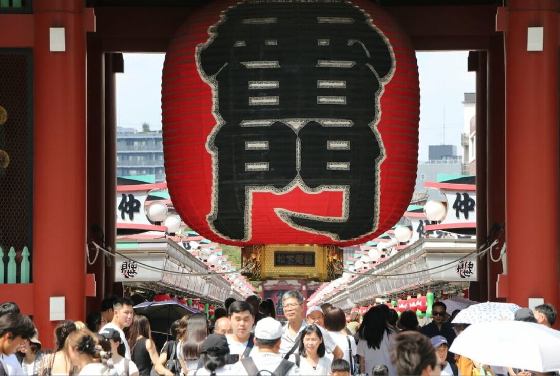 ■平日でも祭りのような賑わい 「人力車で浅草観光はいかがですか?」 浅草寺前の歩道では威勢のいい客引きの声が飛び交っていた。車夫は日焼けした手に外国語のパンフレットを持ち、外国人観光客に英語で対応している。雷門では外国人のグループが赤い大提灯をバックに撮影中だ。「撮りましょうか」と、車夫が声をかけている。土産物屋や飲食店が軒を連ねる仲見世通りも外国人観光客でいっぱいで、祭りのようなにぎわいだ。 日本政府観光局によると、インバウンドの都道府県別訪問率ランキング(2024年)のトップは東京都(51.5%)で、大阪府(39.6%)、千葉県(36.6%)、京都府(29.5%)と続く。 25年夏、浅草の国際観光拠点としての存在感は上がっているように見えた。国策としてインバウンドに力を入れた成功例のひとつで、浅草らしい下町の気さくな雰囲気も、国際化に寄与したのかもしれない。そう感じていた。