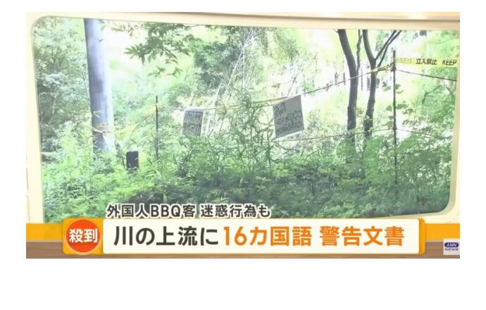 群馬県にある川の上流で、16カ国の言語でごみの放置を警告する文書を掲げている場所があります。下流でバーベキューが禁止になったことで、今度は上流で迷惑行為が深刻になっています。