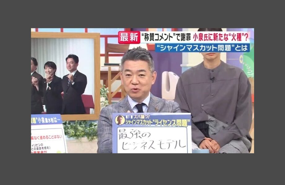 日本が約30年かけて開発した高級ブドウ品種「シャインマスカット」の苗木が中国や韓国に流出し、無断で生産・販売が行われている問題が注目を集めています。 これを受けて農水省が海外生産を認める代わりに、ライセンス許可を出す方針を検討していることについて、「旬感LIVE とれたてっ!」に出演した橋下徹氏が「最強のビジネスモデル」として捉えるべきだと主張しました。