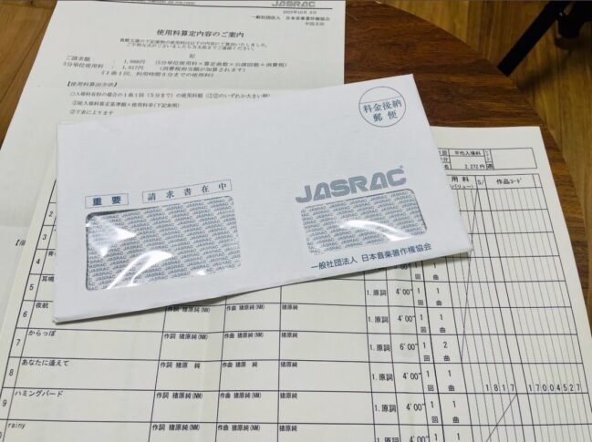 なんだろうと思い開けると先日ソロコンサートで演奏したオリジナル曲に対する著作料の請求でした👀