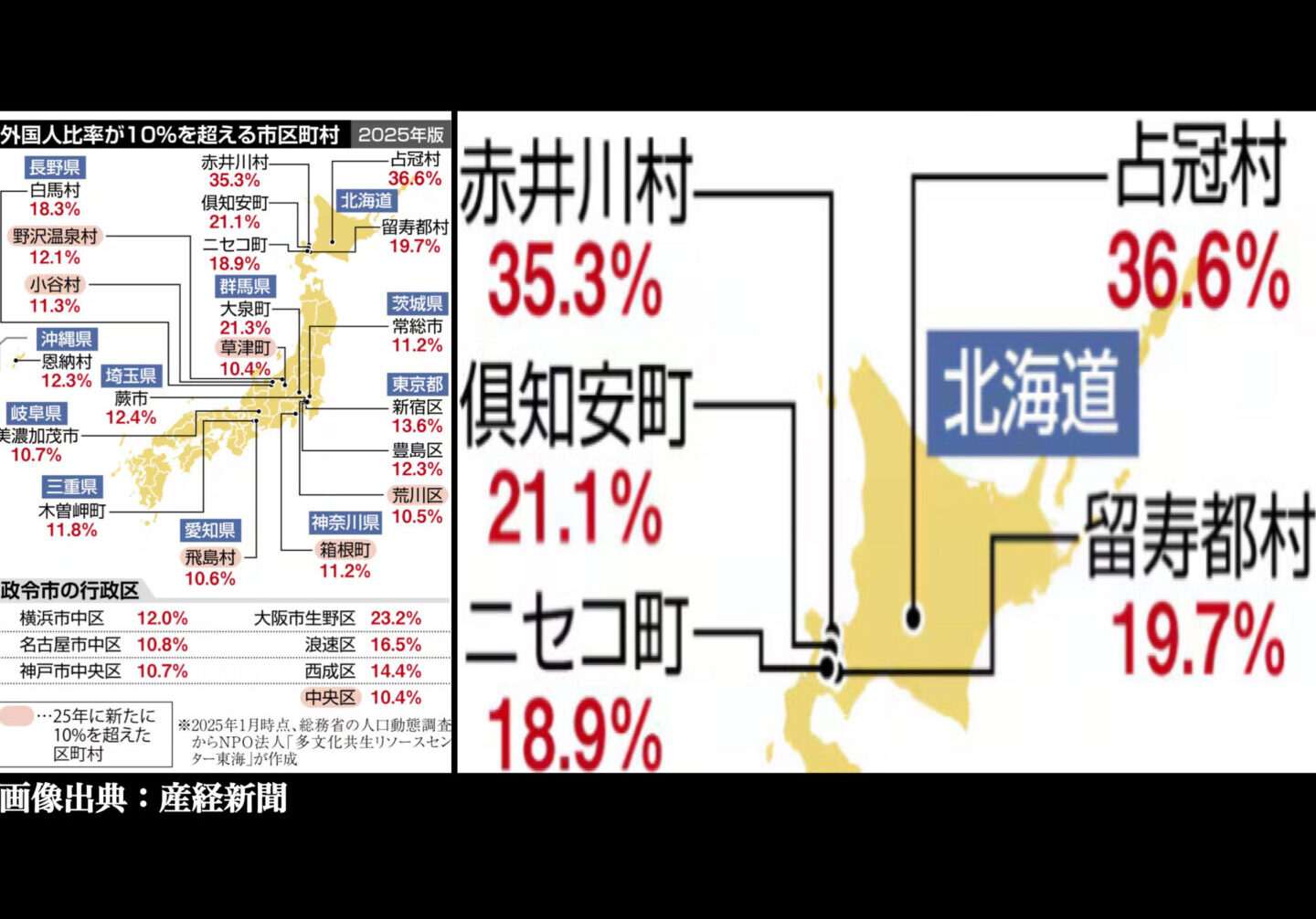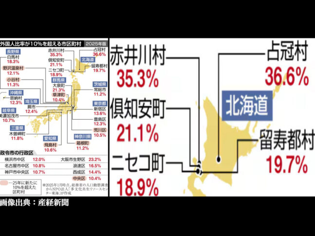 【最高は北海道占冠村36%】全国27市区町村で外国人比率10%超 箱根町など1年で7増