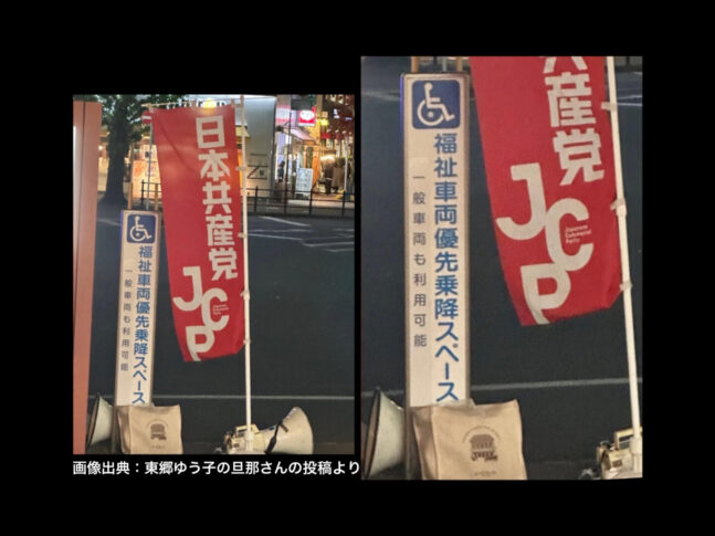 SNSで拡散された一枚の写真が、思わぬ議論を呼んでいます。話題となっているのは、日本共産党が街頭活動を行っていた際の様子を撮影したもので、のぼり旗が「福祉車両優先スペース」と書かれた場所のそばに立てられていました。この投稿がXで拡散され、「マイノリティに寄り添うと言いながら、行動が伴っていないのでは」とする声が寄せられています。
