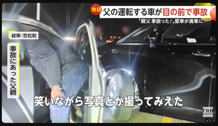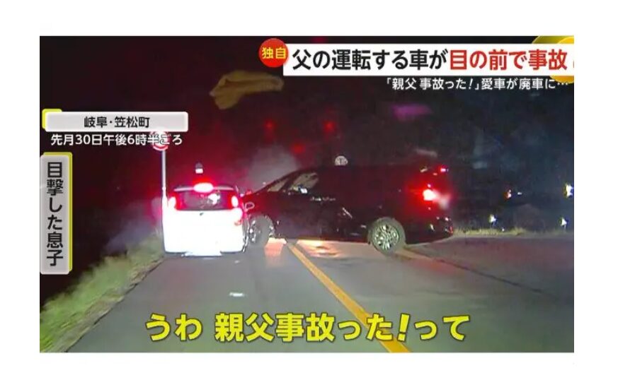岐阜県笠松町で10月30日夕方、帰宅途中の父親が運転する車が、反対車線から出てきた黒い車と正面衝突する事故が発生した。その瞬間は、後方を走っていた息子のドライブレコーダーに鮮明に記録されていた。事故の相手は外国人とみられ、「日本語わからないです」と笑いながら現場で写真を撮っていたという。この対応に、被害者家族だけでなく多くの視聴者からも怒りと困惑の声が上がっている。