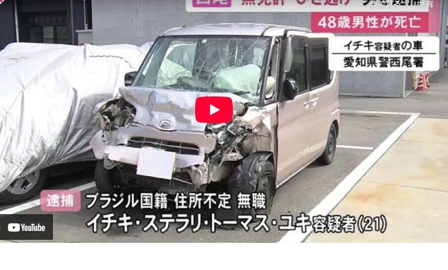 11月2日未明、愛知県西尾市西幡豆町で起きた死亡ひき逃げ事件。警察は、ブラジル国籍のイチキ・ステラリ・トーマス・ユキ容疑者(21)を、ひき逃げと無免許過失運転致死の疑いで逮捕した。イチキ容疑者は軽自動車を無免許で運転中、対向車線にはみ出し、軽トラックと正面衝突。軽トラックを運転していた蒲郡市の大久保公博さん(48)が死亡した。