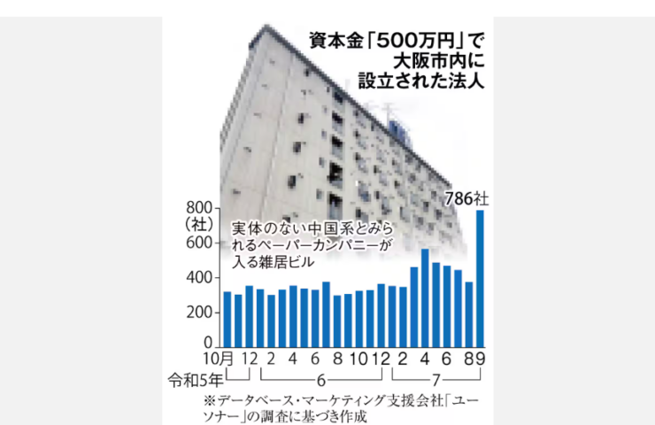 <独自>在留資格の取得要件厳格化前に大阪市で中国系法人が「駆け込み起業」、9月に倍増