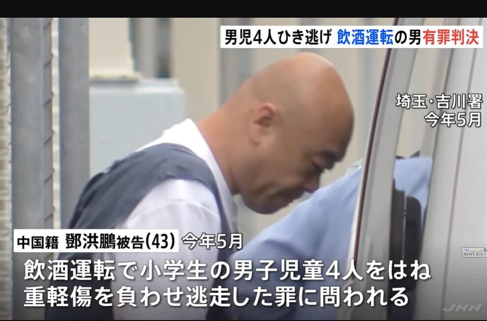 飲酒し小学生4人ひき逃げのC国人被告に執行猶予付き有罪判決…逃走行為は「責任回避のため」と指摘 さいたま地裁越谷支部 https://t.co/BURiBRV6PK