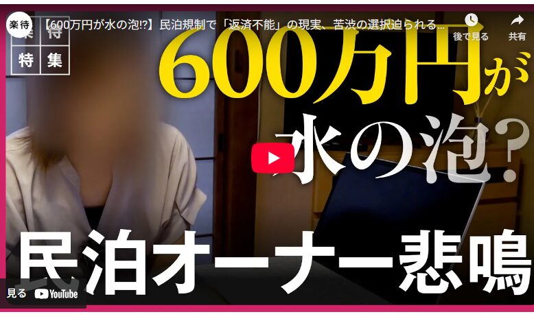 【600万円が水の泡!?】民泊規制で「返済不能」の現実、苦渋の選択迫られるオーナーの悲鳴