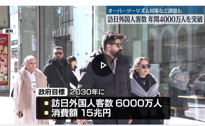 【速報】訪日外国人客数が年間4000万人突破 政府は2030年に6000万人目標[日テレ/動画]
