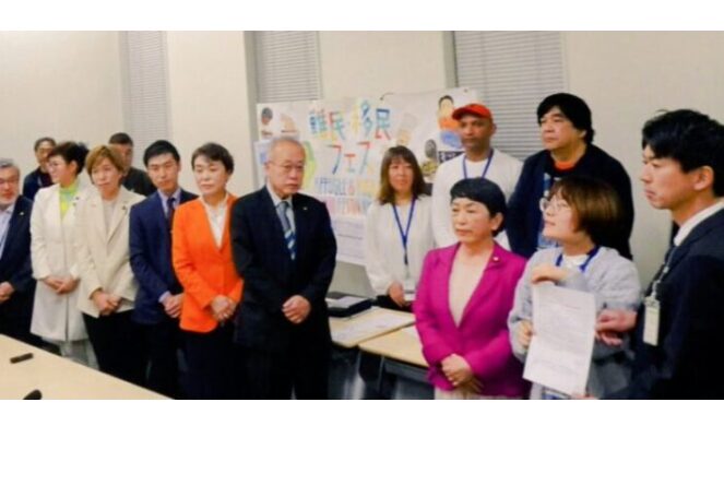 政情不安で帰国できず、日本で20年以上くらしてきたスリランカ国籍のナヴィーンさんは、2度目の難民申請も不認定に。在留特別許可を求めていますが強制送還のリスクがあり、強制送還中止を求める署名を提出する集会が行われました。#山添拓 議員を含む33人の議員が賛同し名前を連ねています。 pic.twitter.com/ZLlCViVhqW