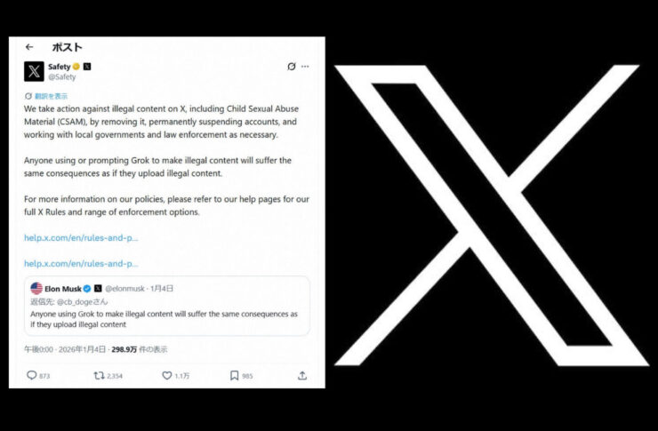 X(旧ツイッター)に搭載された対話型の生成AIであるGrokの画像編集機能を巡って、実在する人物の写真が本人の同意なく加工される事例が相次いでいることが報じられました。特に露出度の高い画像や、性的な印象を与える加工が行われたとして、被害を訴える声がSNS上で目立つようになりました。こうした状況を受け、Xは日本時間9日時点で、Grokによる画像の生成および編集機能を有料会員に限定する措置を取っています。無料ユーザーが画像編集を求めた場合には、有料会員登録を促す案内が表示される仕組みとなりました。