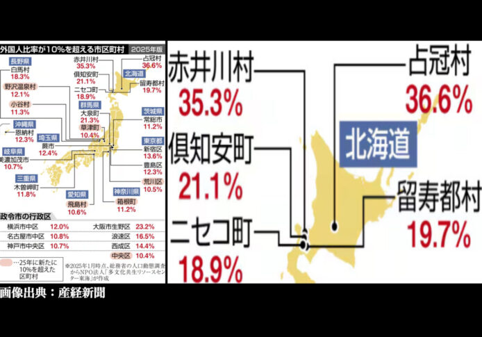 【最高は北海道占冠村36%】全国27市区町村で外国人比率10%超 箱根町など1年で7増[産経]