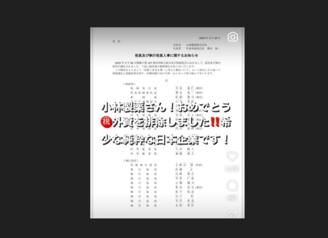 【X民】小林製薬さん!おめでとう!外資を排除しました!希少な純粋な日本企業です!