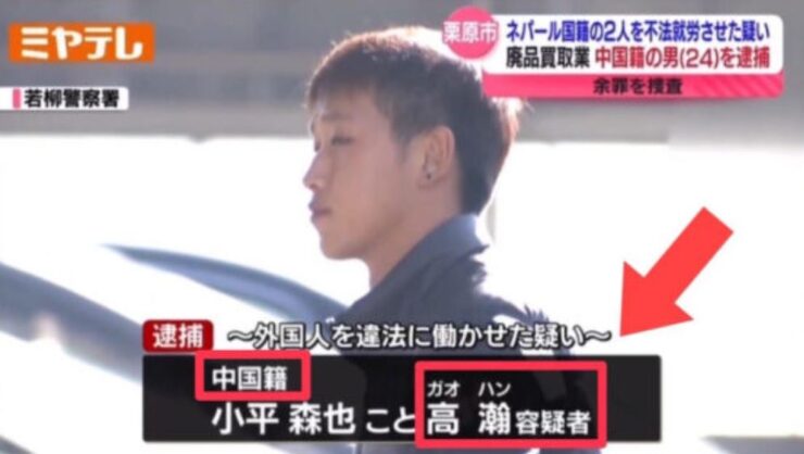動画【中国人が通名】小平森也こと高瀚(ガオ・ハン)容疑者→就労が認められていないネパール人を違法に働かせたとして逮捕 [24/11]