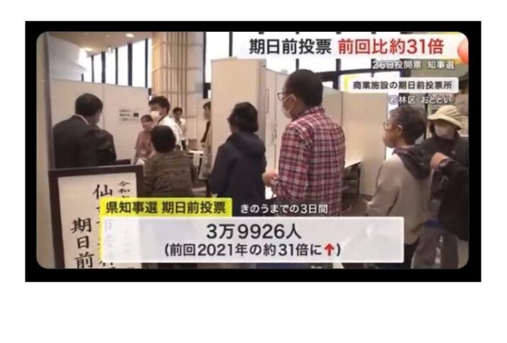 【宮城県知事選挙】「前回4年前の31倍に増加」期日前投票3日間で約4万人 [東北放送/動画]