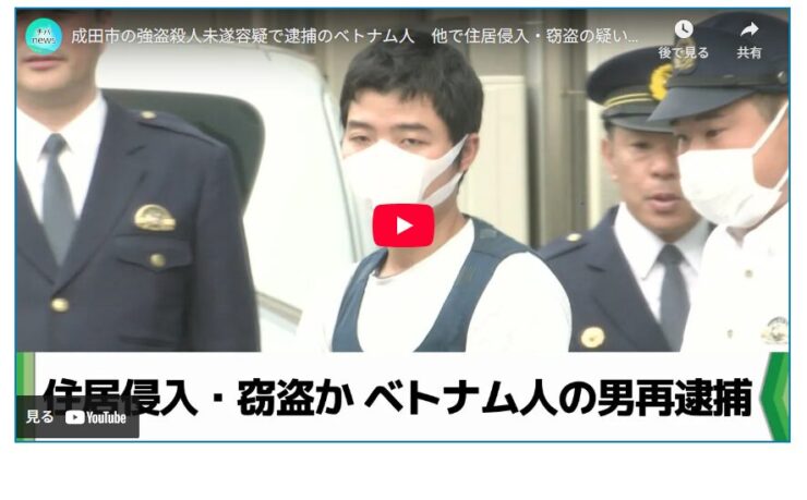 【5回目の逮捕】千葉・成田市の強盗殺人未遂 ベトナム国籍の無職の男 栃木の住宅侵入窃盗容疑 共謀のベトナム人技能実習生も逮捕[TBS]※動画