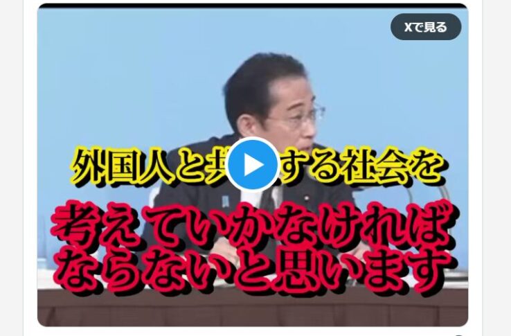 岸田氏「外国人と共生する社会を考えていかなければならないと思う!外国人9割の国もある。日本は外国人が暮らしやすい地域社会を進めていく必要がある!」※2024年動画