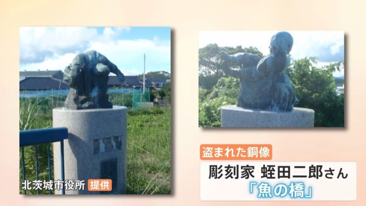 茨城県北茨城市関南町神岡下の関南新橋で、市が設置したブロンズ像4体(計約2500万円相当)がなくなっているのが分かり、市は20日、県警高萩署に被害届を提出した。