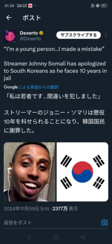 迷惑配信者として知られるジョニーソマリ氏が、韓国での行動によって重い罰則の可能性に直面しているとのニュースに驚きました。彼の過去の配信行為はさまざまな国で問題視されてきましたが、今回の韓国での行動によって最大で懲役10年が科される可能性が浮上し、ようやく本人も事の重大さに気づいたのか、全力で謝罪を始めていると報じられています。迷惑行為がここまでエスカレートし、国際的な問題に発展するとは思ってもいませんでしたが、過去の行いを振り返ると、当然の結果のようにも感じます。